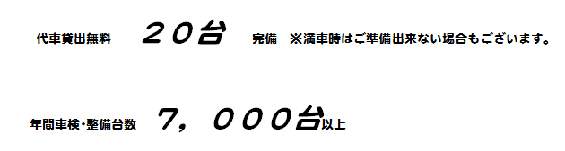 ご納車後から始まるお客様とのお付き合いを大切と考えています。当社は民間指定工場を完備し国家資格である検査員資格取得者が2名、二級整備士所得者が4名常時しておりますので高い技術力を持ったスタッフがお客様のカーライフを『安心・安全・快適』に送って頂ける様な体制と商品(エンジンオイル・タイヤ・ボディーコーティング・ナビゲーション・ETCなど)を整えております。